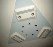 Decken-Lampe der besonderen Art: Gipskartonplatte mit 6 x 18 W-Neonleuchte 6 x 35 W-Halogen 10 x 10 W-Halogen Sternenhimmel mit Spiegeldreiecken (alles durch Funk schaltbar) |