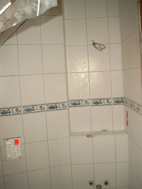Dachausbau: Wand fliesen mit Waschplatz-niesche