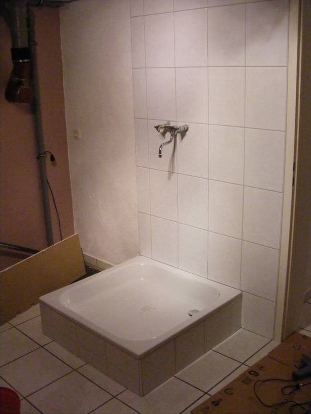 Keller: Dusche bauen (statt Waschbecken, die Armatur wurde später getauscht!) |
