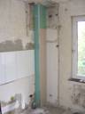 Küche: Fallrohr verkleiden (Dämmung „schluckt“ Fließ-geräusche) |